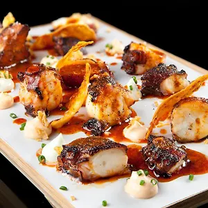 Les invités peuvent profiter du temps dans le bar en terrasse. L'espace bar comprend une terrasse, ainsi qu'un piano et un Wi-Fi. Servant des repas péruviens, Yakumanka by Gaston Acurio se trouve à quelques instants d'Hotel Condes de Barcelona.