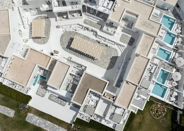 Offrant une piscine privée et une vue sur l'océan, Mykonos Bay Resort & Villas Mykonos Town est situé à quelques instants de la Plage de Megali Ammos. L'hotel 4 étoiles design dispose un Wi-Fi dans les zones publiques et d'un parking sur place.